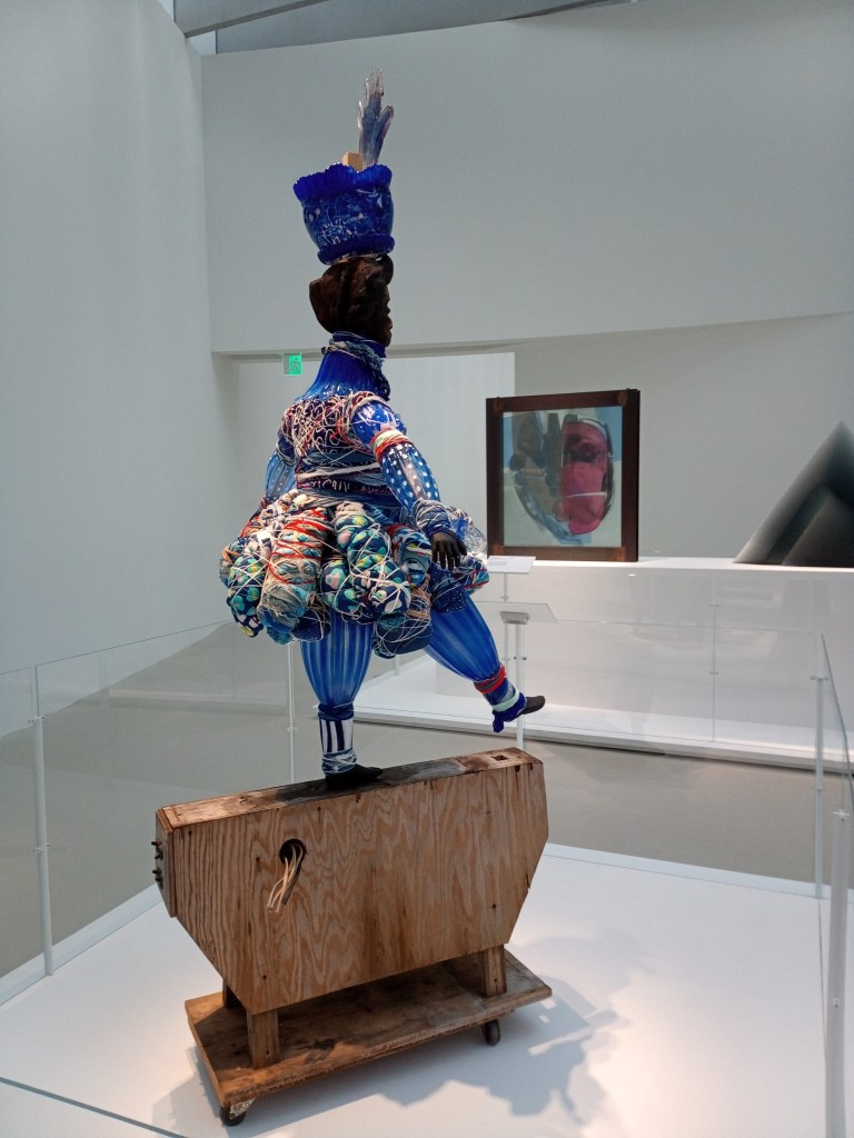 This recent acquisition in the museum’s collections is a sculptural work defining new parameters. Vanessa German is a multidisciplinary artist, sculptor, poet, and performance artist. In her work, she has used mixed-media, found objects and blown glass to create a sculpture that celebrate cultures and identities of the black people. Anti-black violence has been a subject matter in her work; the art is showing identity, resilience, and community building, giving a voice for the marginalized.