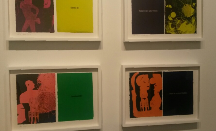 Then, your exhibition at the gallery has these colorful images called ‘future business’, that have a short message embedded in them. It seems that they relate to the performance, do they have an element of time in them as well?