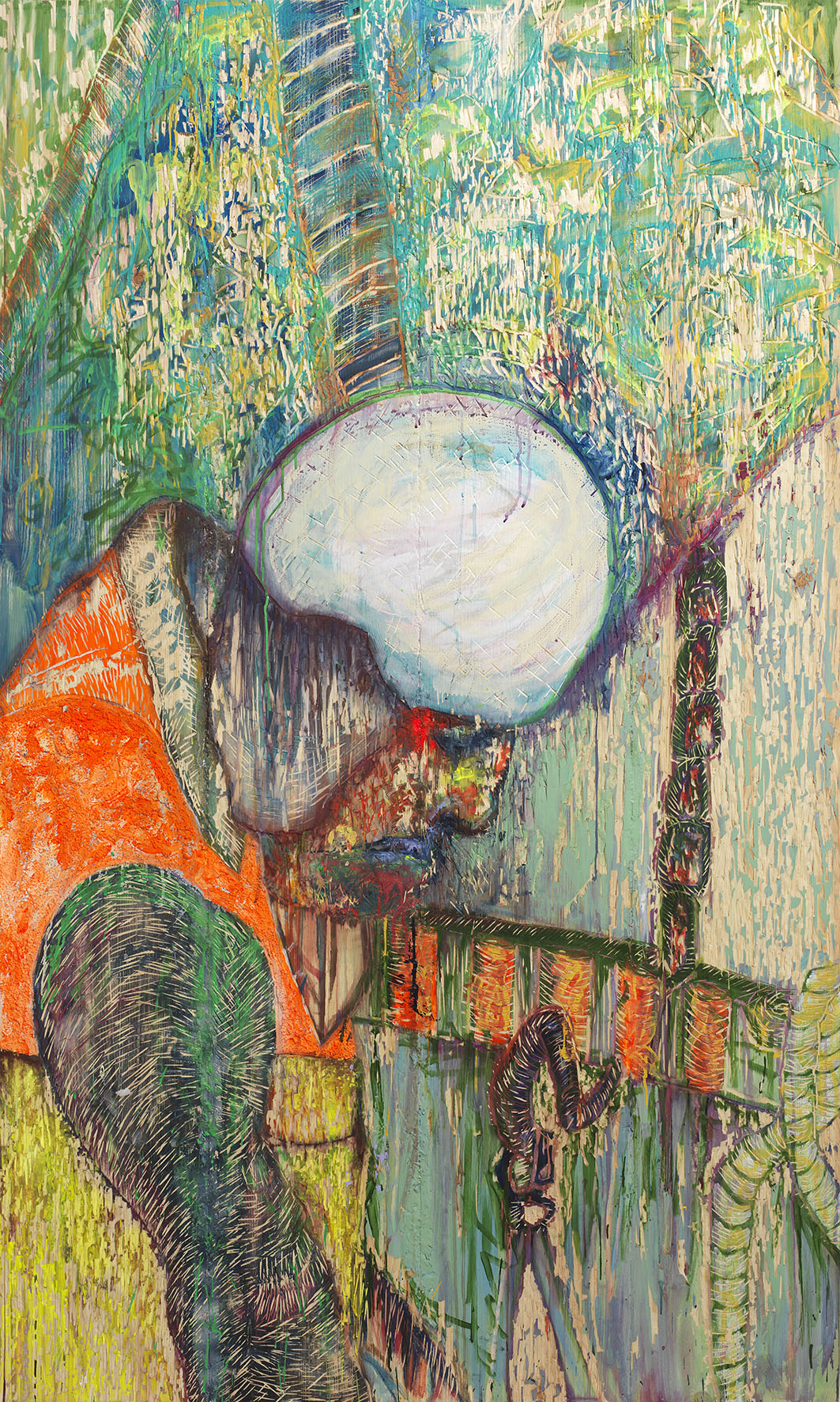 CV: I guess all the developments on my techniques have had to do with the search of some kind of layer in between a painting. Painting on canvas, plexi glass, paper, mdf-boards, wood, wall, all these have circulated in my work. I can return to a technique I tried and worked with several years later and proceed with it further. I see working as a visual artist also some kind of work of an inventor, chemist, and alchemist. All the material details and accidents with them lead in to interesting paths and can start even a new process.