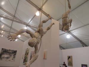 Rémy Markowitsch’s five-part group of wooden sculptures took the stage curated by Berlin-based Galerie EIGEN + ART. His installation FALL uses two different historical events as material, namely four of the sculptures mimic the painting Absturtz (the Fall) by Swiss painter Ferdinand Hodler, depicting Alpine climbers that were created for the 1894 World’s Fair in Antwerp. The fifth figure comes from a different source, representing a German mountaineer Toni Kurz, who died when attempting to climb the north face of the Eiger in 1936. Sculptures are nude, so they come across as timeless, without specific location. His installation is accompanied by his other work showing mountains, which give out a feel of nostalgia to the romantic past times when climbing at the world’s highest mountains produced heroes, while there were sacrifices, and danger involved.